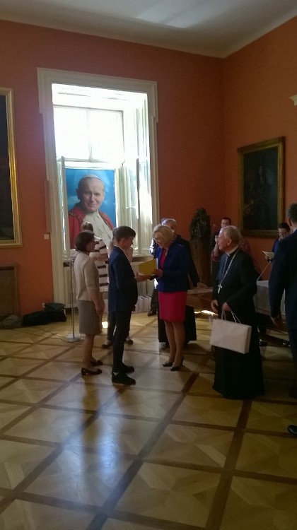 Wszyscy byliśmy zaskoczeni jego stylem wypowiedzi oraz umiejętnością łatwego nawiązywania kontaktu z młodzieżą, co naprawdę w dobie Internetu nie jest takie łatwe ;). Trzeba również wspomnieć ,że uroczystość wręczania nagród odbyła się w sali królewskiej, a więc miejscu, w którym znajduje się słynne okno, przez które Św. Jan Paweł II błogosławił i pozdrawiał wiernych.