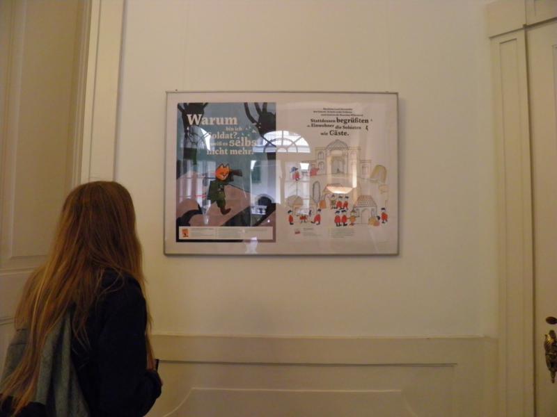 Wystawę przygotowała Międzynarodowa Biblioteka dla Młodzieży w Monachium. Prezentowała ona wybór książek ilustrowanych dla dzieci, różnych kręgów językowych. Książki w subtelny sposób pokazują, jak wygląda życie codzienne na obszarach objętych kryzysem, pod rządami autorytarnymi, opowiadają o ucieczce, prześladowaniach i cierpieniach. Wskazują na przyczyny wojen i przemocy, tj. ksenofobię, stereotypy, czy nadużywanie władzy. Często kończą się wizją lepszej przyszłości bez murów, które dzielą, bez wrogości i wojen. Biblioteka instytutu wyposażona jest w literaturę, czasopisma oraz audiobooki obszaru niemieckojęzycznego i umiejscowiona jest na górnych piętrach, dlatego czytelnicy w chwilach relaksu mogą podziwiać Sukiennice, Kościół Mariacki i Wieżę Ratuszową.