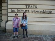 Edukacja teatralna została zakończona w bieżącym roku szkolnym obejrzanym w Teatrze im. Juliusza Słowackiego spektaklem „Ziemia obiecana”. Wyjazd do tego teatru w dniu 24. 05. był szczególny ze względu na to, że odbył się w ramach obchodzonego w naszej szkole Dnia Patrona Gimnazjum noszącego to samo imię co teatr oraz wzięli w nim udział uczniowie będący zwycięzcami ubiegłorocznego konkursu WIEDZY O PATRONIE SZKOŁY. Bilet do teatru jest nagrodą ufundowaną przez szkołę dla laureatów tego konkursu – a w ubiegłym roku byli nimi następujący uczniowie:
