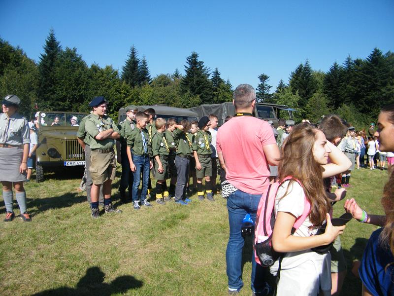 10 września 2016 roku wraz z wychowawczynią i panem Marcinem Gmyrkiem wybraliśmy się na Suchą Polanę. Rano pojechaliśmy do Poręby, a stamtąd pieszo udaliśmy się w kierunku Przełęczy Sucha. Gdy dotarliśmy na miejsce, dostrzegliśmy naszych kolegów z różnych szkół z pocztami sztandarowymi, harcerzy oraz kombatantów. Wszyscy bowiem pragnęli pojawić się na zlocie, który był poświęcony uczestnikom walk, jakie rozegrały się w okolicach Myślenic we wrześniu 1944 roku.